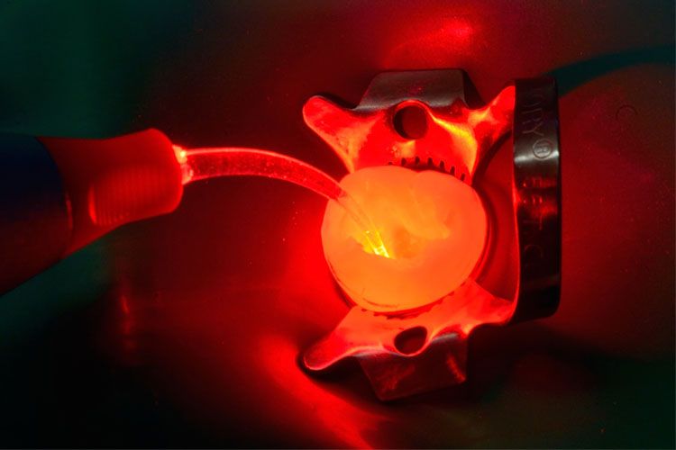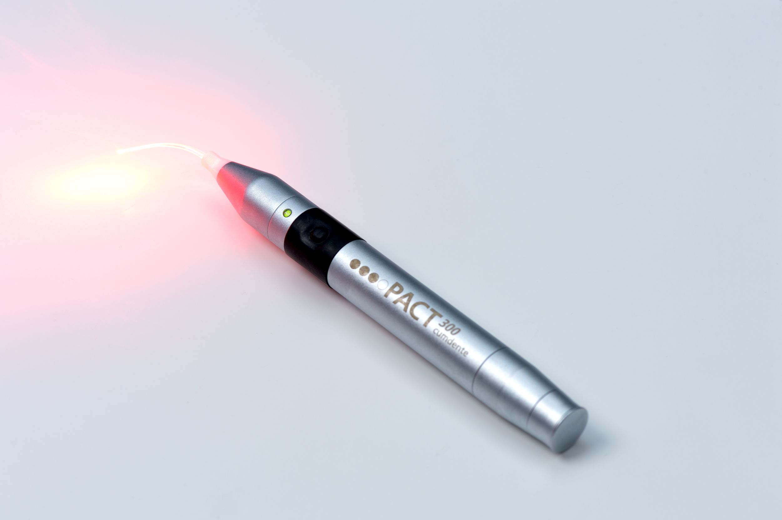 - photoaktivierte Desinfektion: Um sicher alle Bakterien zu eliminieren, setzen wir einen speziellen Farbstoff ein, der durch Laserlicht aktiviert Sauerstoff abgibt. Das zerstört Bakterien auch in ansonsten nicht erreichbaren Arealen (PACT).