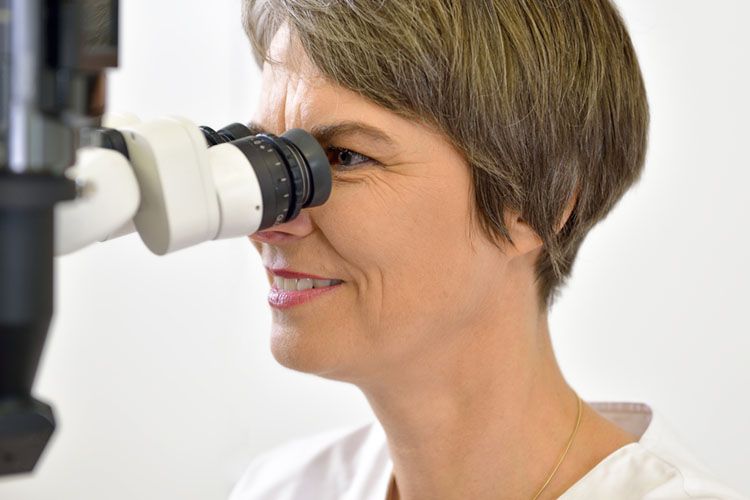 Die Erfolgsaussichten für eine mit höchster Präzision durchgeführte Wurzelkanalbehandlung liegen bei bis zu 96 %. Ob ein Zahn durch eine Wurzelkanalbehandlung gerettet werden kann, ist einerseits davon abhängig, wie stark der Zahn bereits geschädigt ist und wie komplex der Verlauf der Wurzelkanäle ist, und andererseits, wie qualifiziert, erfahren und modern ausgestattet der oder die Behandler/in ist. Der Einsatz des OP-Mikroskops mit einer bis zu 24-fachen Vergrößerung ermöglicht es uns, auch feinste Strukturen im Zahn zu erkennen und zu behandeln, z. B. kleine zusätzliche Kanälchen. Modernste Techniken bei der Vermessung, der Aufbereitung, der Desinfektion und der Füllung der Wurzelkanäle sichern die Qualität unserer Wurzelkanalbehandlungen. Dr. Karin Benz hat sich durch zahlreiche Fortbildungen und langjährige Erfahrung auf dem Gebiet der Endodontie spezialisiert und führt die Behandlungen mit großer Empathie und höchster Sorgfalt aus.